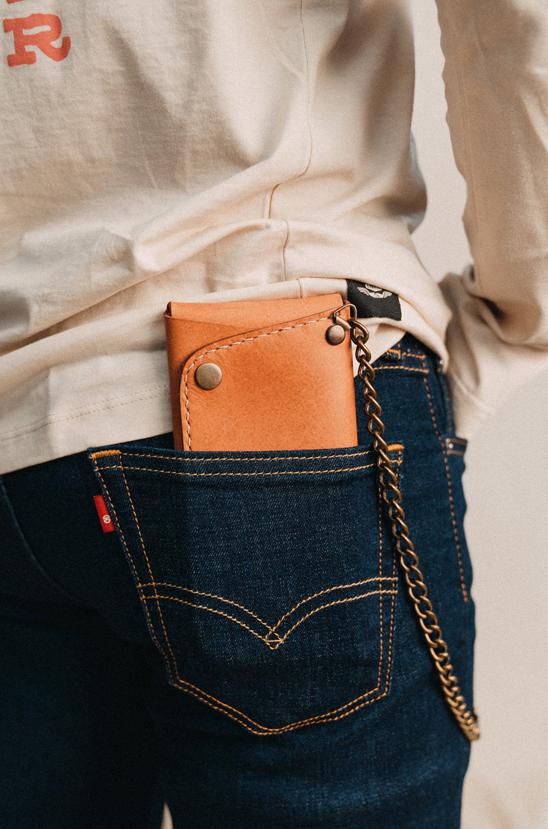 Diseñada específicamente para los amantes de las dos ruedas, una billetera que combina funcionalidad y estilo robusto. Su diseño compacto y seguro, con una cadena resistente y un gancho de metal, garantiza que nunca pierdas tu billetera mientras recorres el asfalto. Perfecta para los Riders que valoran la libertad y la seguridad.